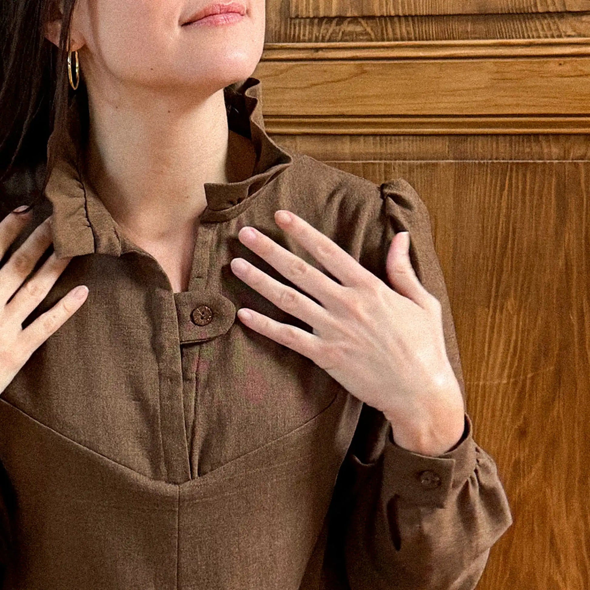 Cette robe est facile à coudre et accessible aux couturiers/ères débutants/tes motivés/ées à intermédiaires. Sa coupe évasée est très confortable. On adore ses détails délicats comme son col volanté ou ses manches froncées.